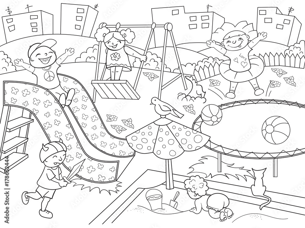 Kolorystyka Plac Zabaw Dla Dzieci Raster Ilustracja Czarno Bialy 178652444 Kolorowanki Naklejki Ecowall24 Pl